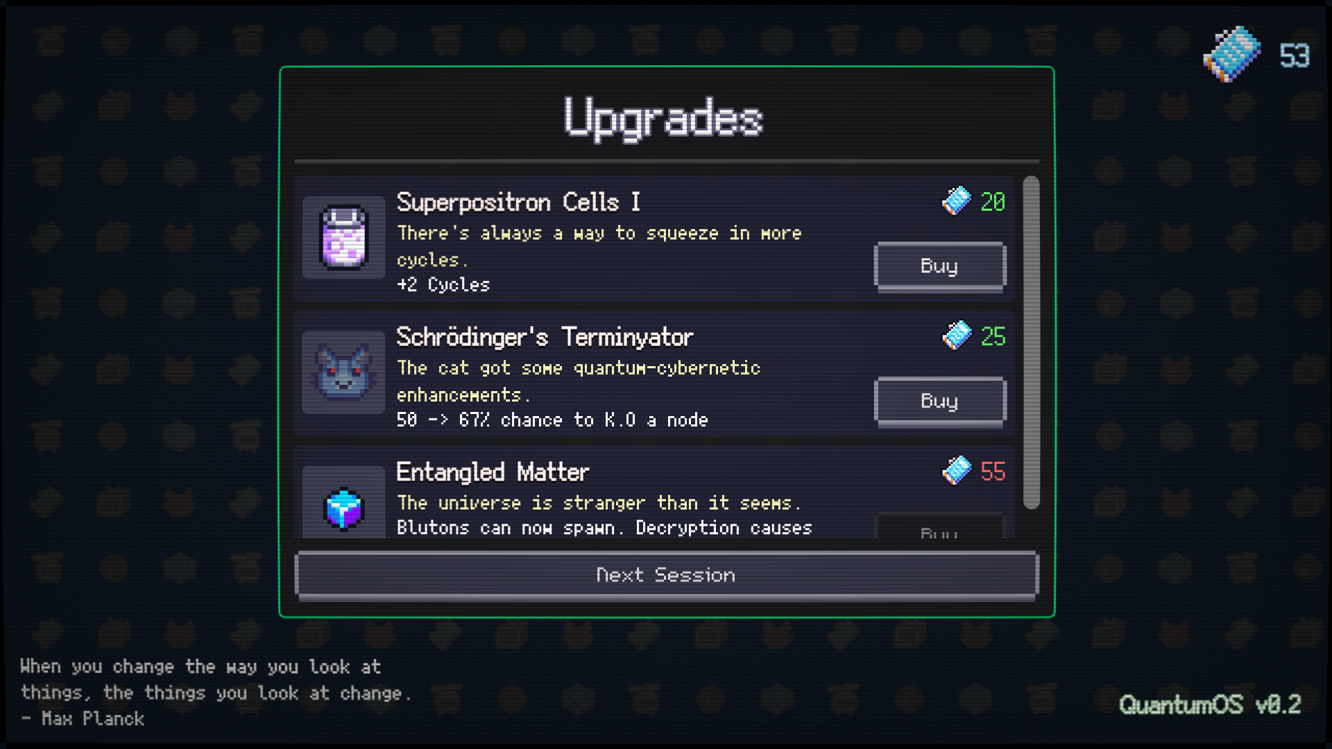 - Currently the only powerup type is Schrodinger's Cat, and it's used to attack programs.